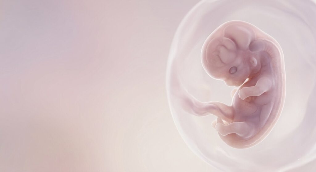 Par ailleurs, les organes et le squelette sont désormais bien en place mais ne sont pas encore fonctionnels et le cœur bat avec énergie. C’est ici que le premier trimestre s’achève, marquant une étape importante pour la grossesse.